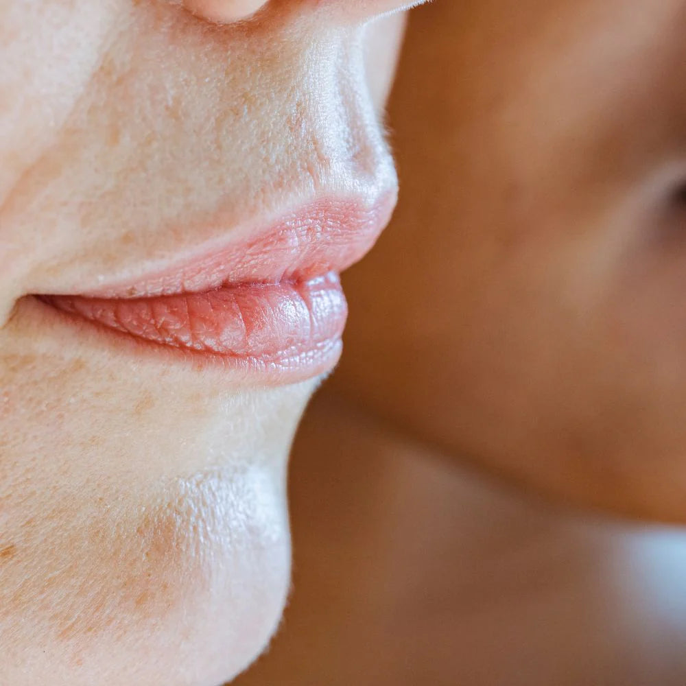 Massage gently onto the face, neck, jawline, above the lips, and directly on the lips.
